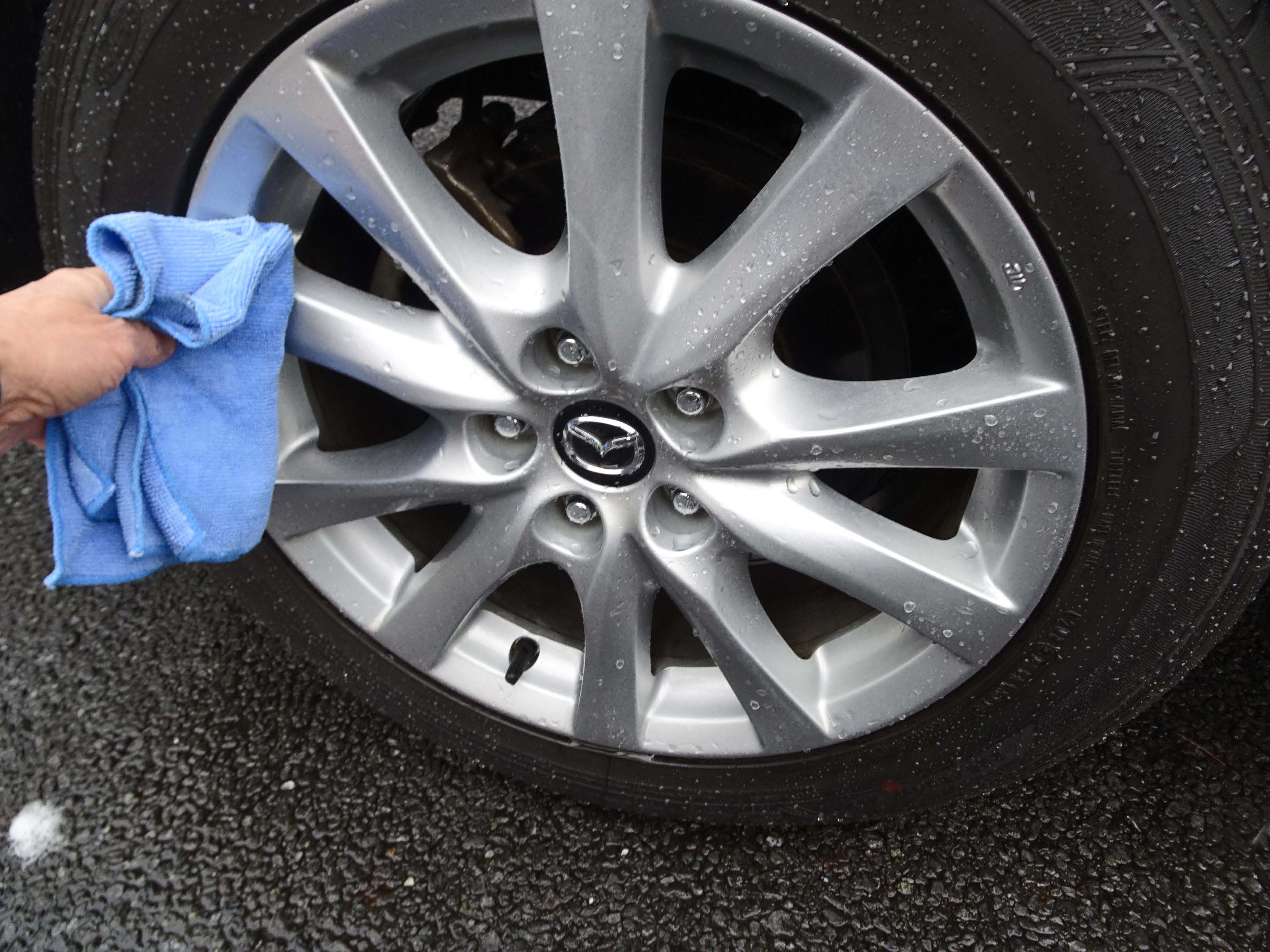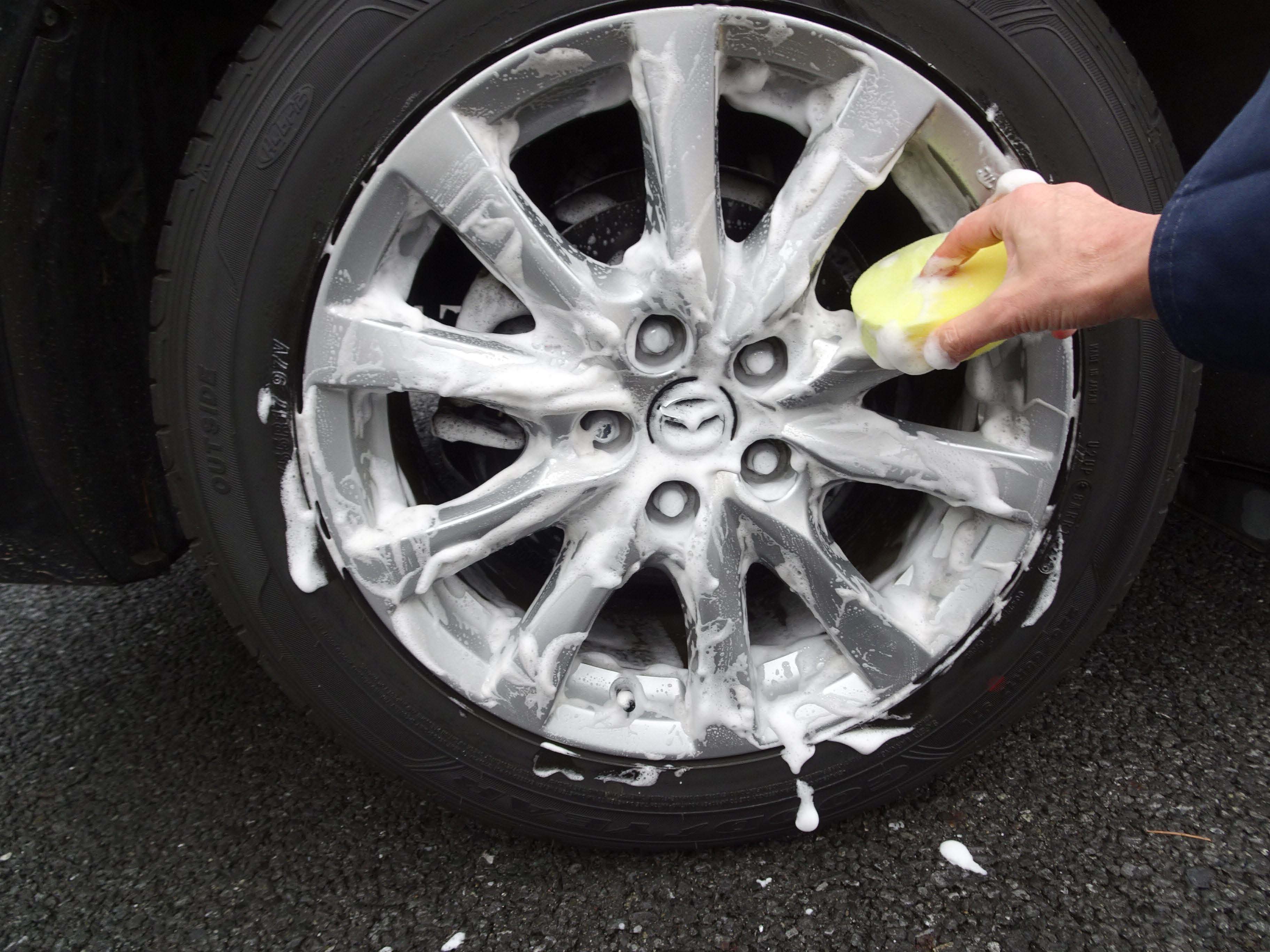 ホイール全体にスプレーしてください。スポンジや柔らかいブラシなどでこすり汚れを落としてください